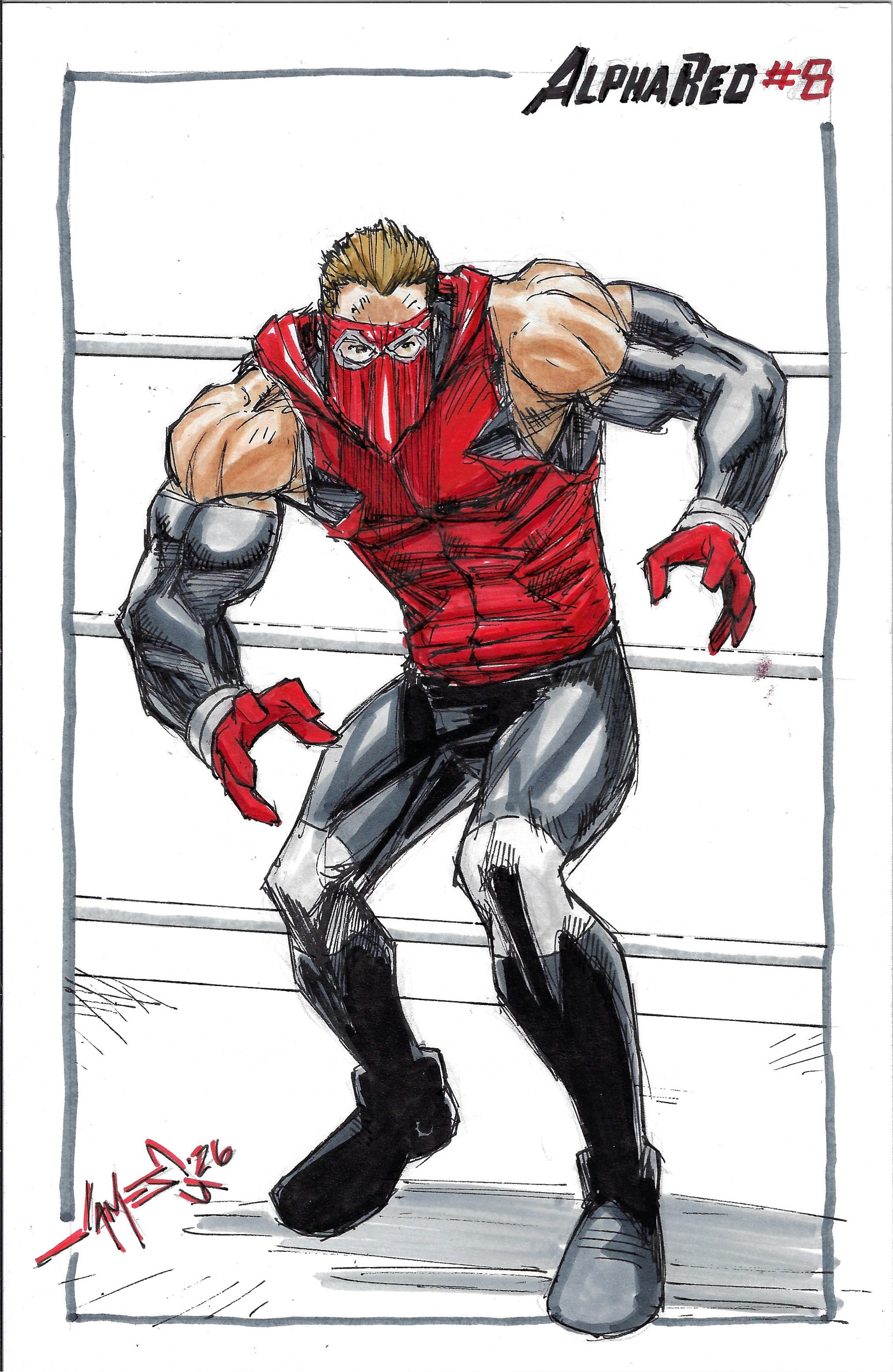 I drew this picture in 2011. That’s a LONG time ago. No overnight success going on here. His hero name was always Alpha Red but his real name started out as Sam. No last name. Just Sam. Not Calvin John Wesley. Alpha Red #1 finally debuted back in February of 2013. So why are you reading an article from a guy who took over thirteen years to get to the 8th issue of his comic? Because I didn’t give up.